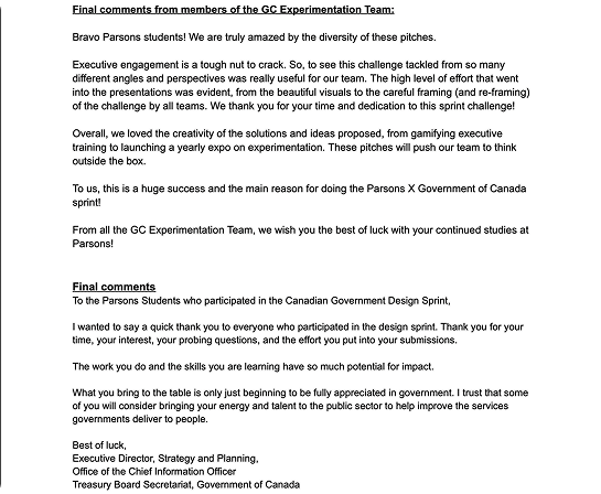 “We presented our design strategy to the Government of Canada Experimentation Team experts and received appreciation, along with valuable feedback. This feedback enhanced our understanding of the system structure and working elements within the sector.”