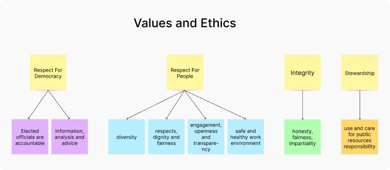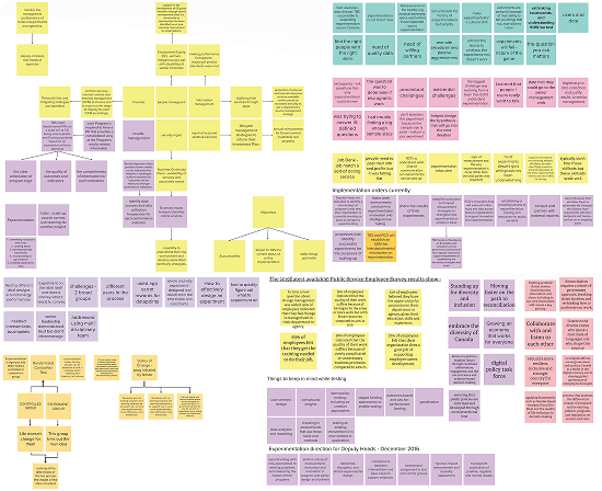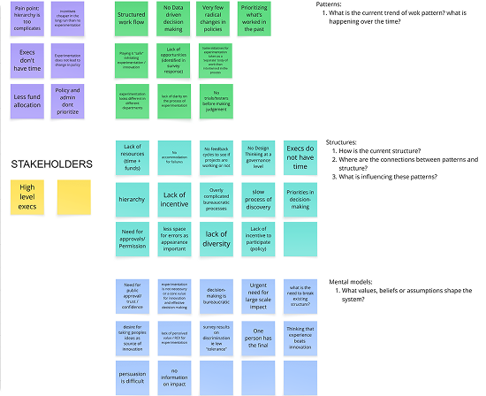 We began conducting secondary research to understand the environment, patterns, and organizational structure of the subject matter experts from the Treasury Board of Canada Secretariat’s culture of experimentation and team management system.