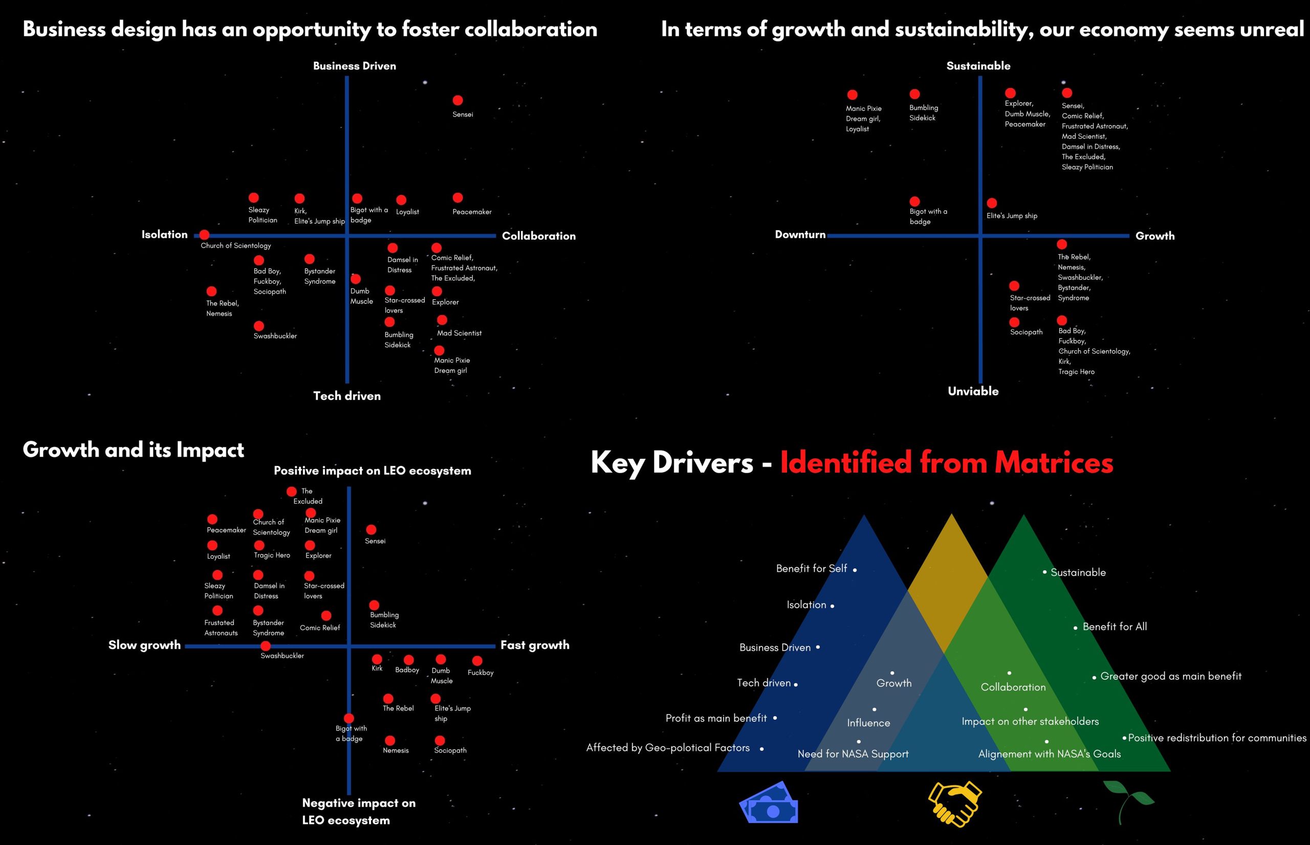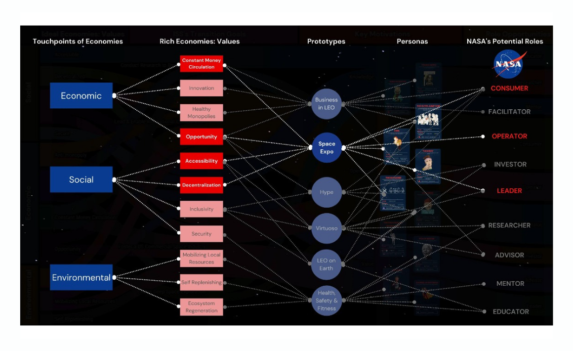 We addressed gaps in NASA’s way of thinking as well as gaps between the current LEO economy and the ideal future state LEO economies that present unique opportunities:
