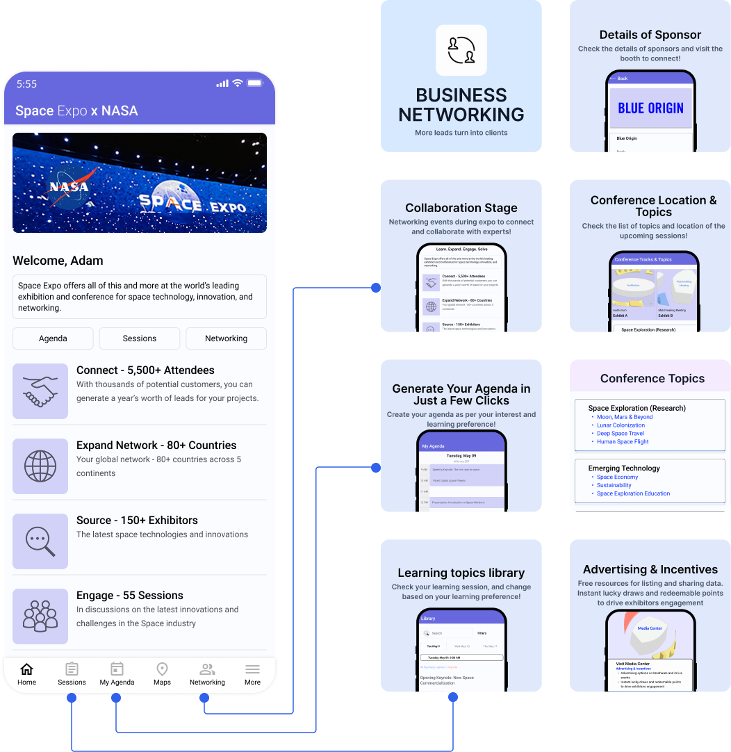 This prototype – Space Expo, was one such notable prototype. Space Expo is a platform that provides useful information, learning resources, and networking opportunities. It helps startups and businesses grow while building global partnerships.