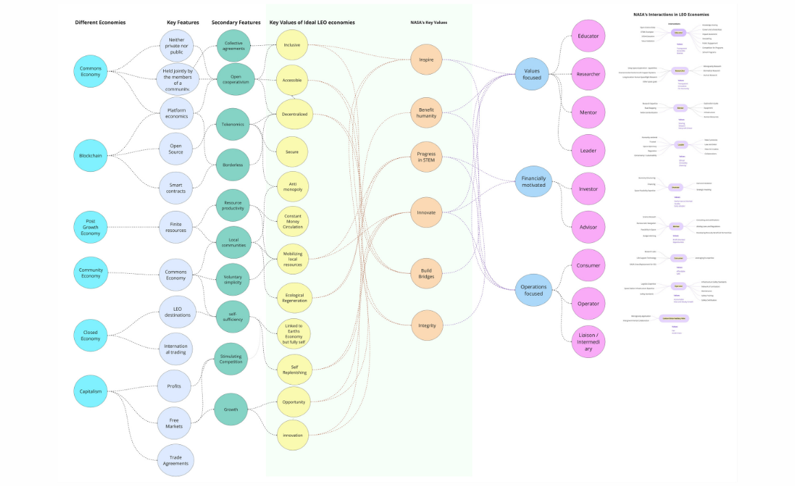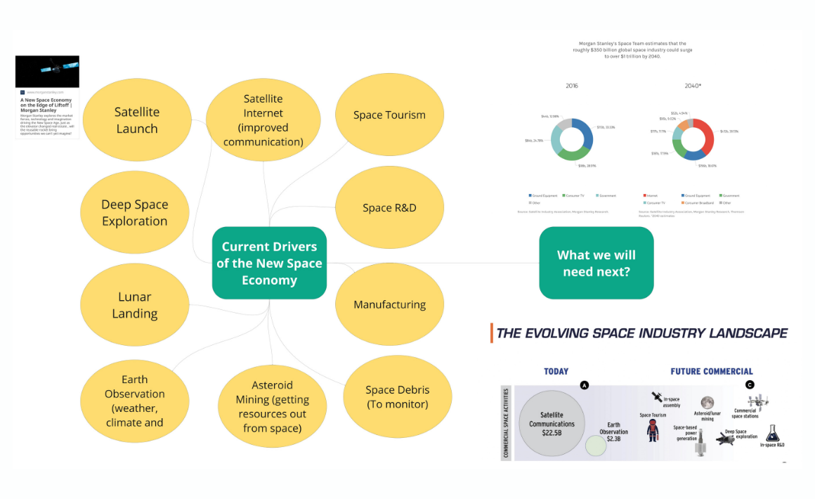 During this Integrated Studio at Parsons, we researched space strategic development, identified key challenges and opportunities, and proposed the concept of the development of a multi-economy model for space. We have developed various strategies and prototypes, aiming to implement groundbreaking strategies for a sustainable future in space exploration, with NASA’s leadership in the evolving space economy.