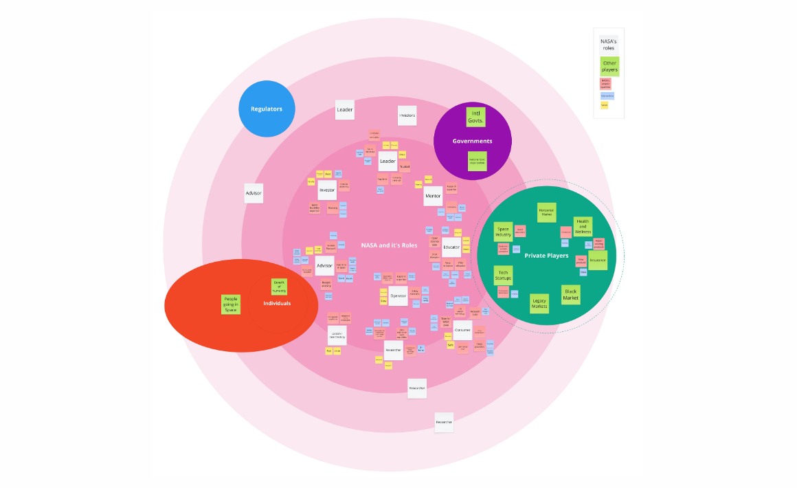 User Research, Stakeholder interviews, Stakeholder maps, Strategy development, SWOT analysis, Persona development, Visual Design, Ideation workshops, Prototyping, Presentation with NASA